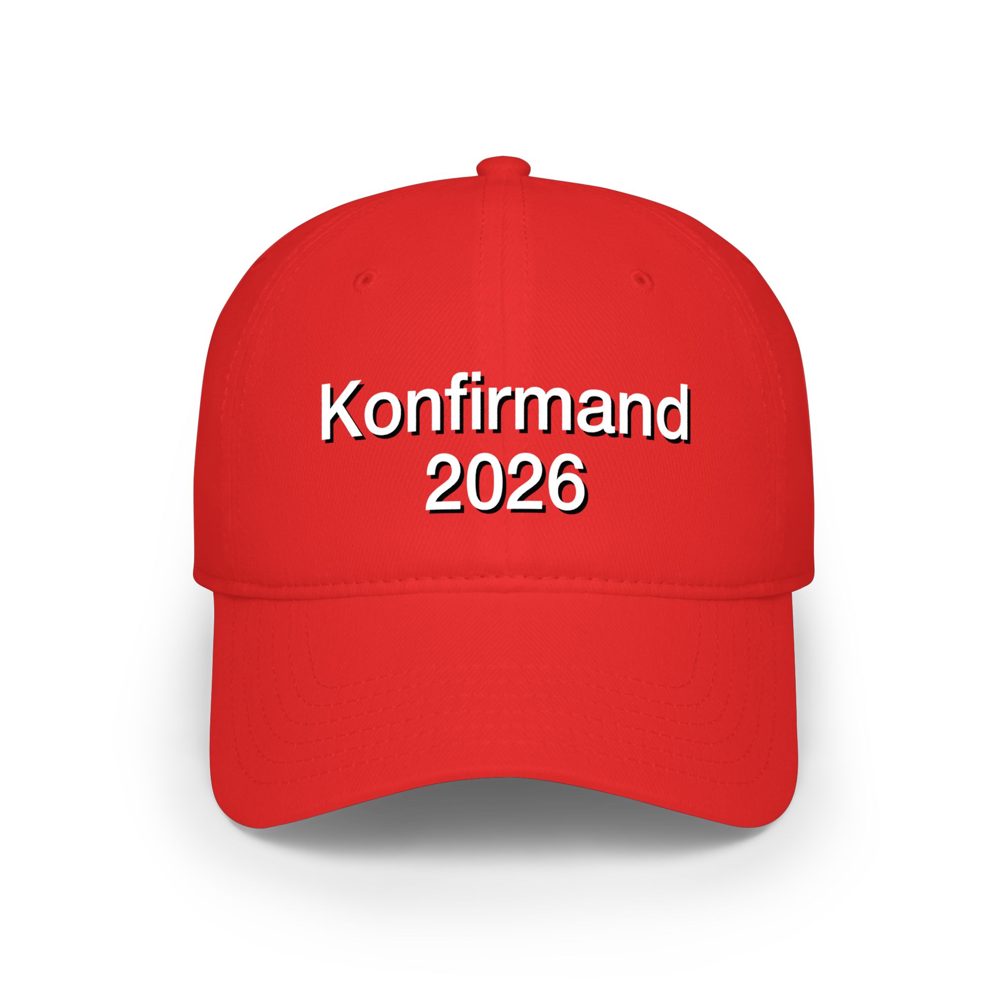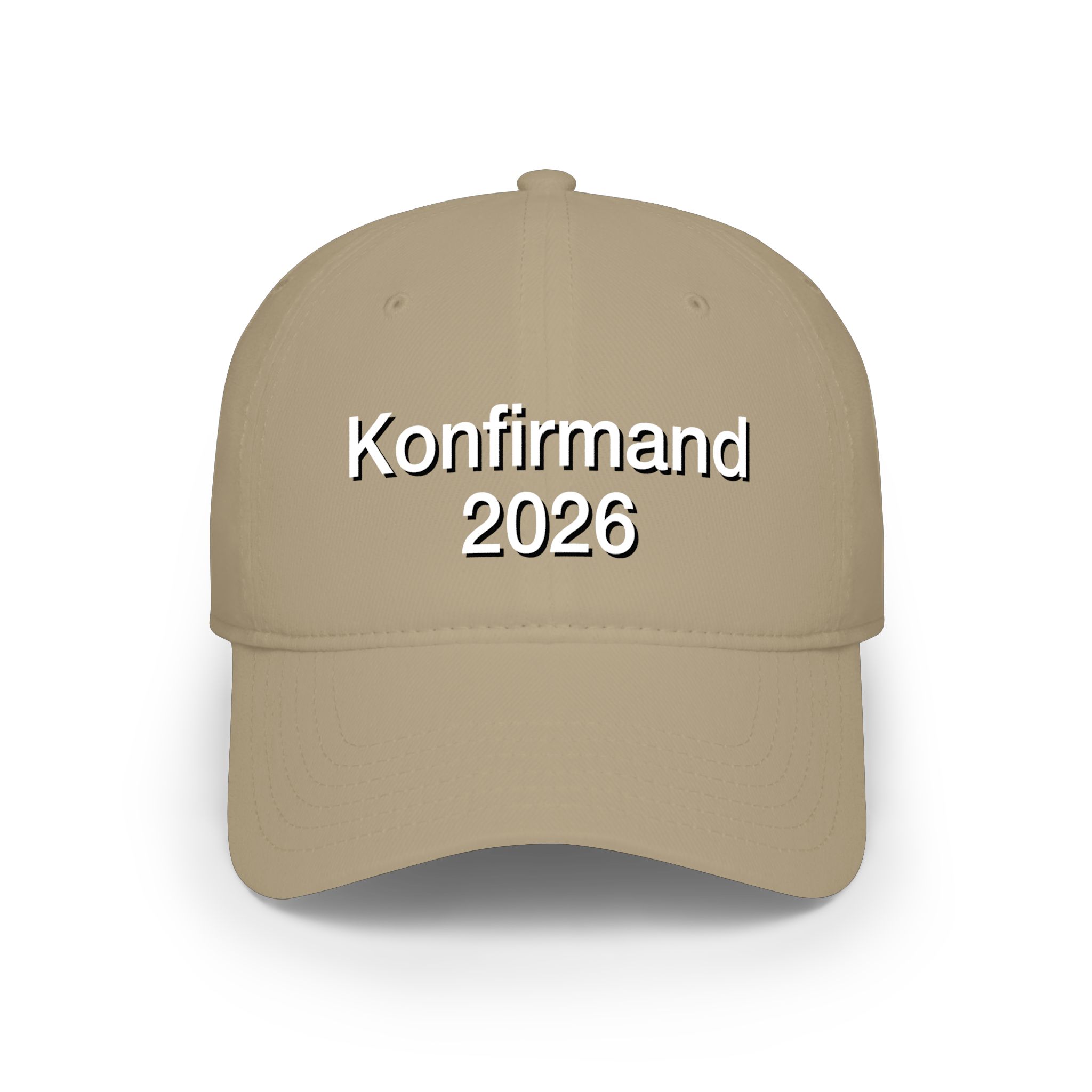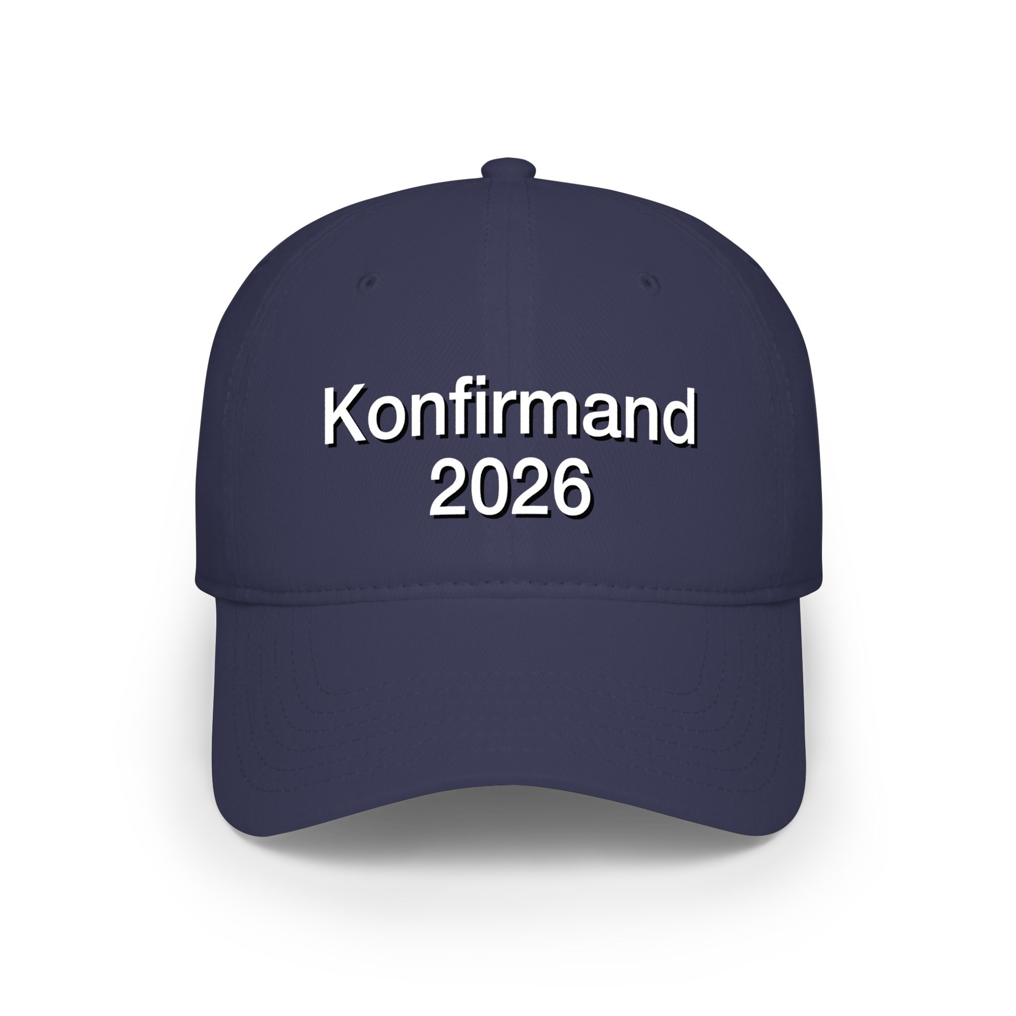 En klassisk baseball cap med teksten “Konfirmand 2026” – ideel som: