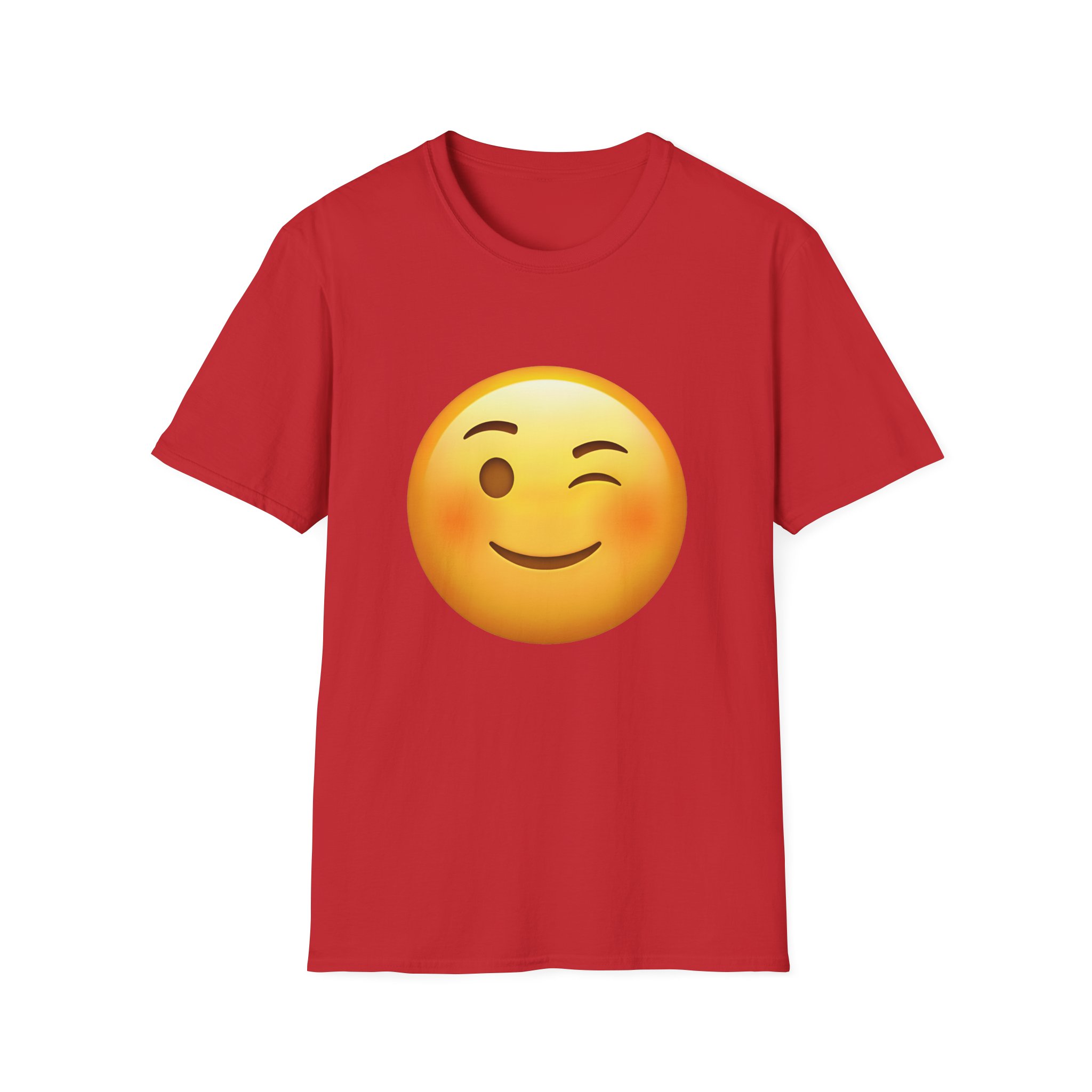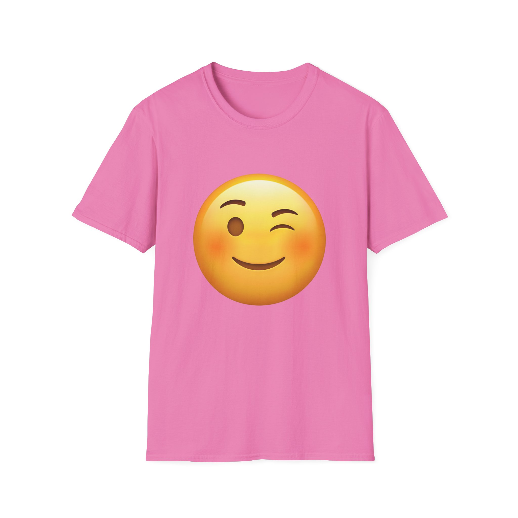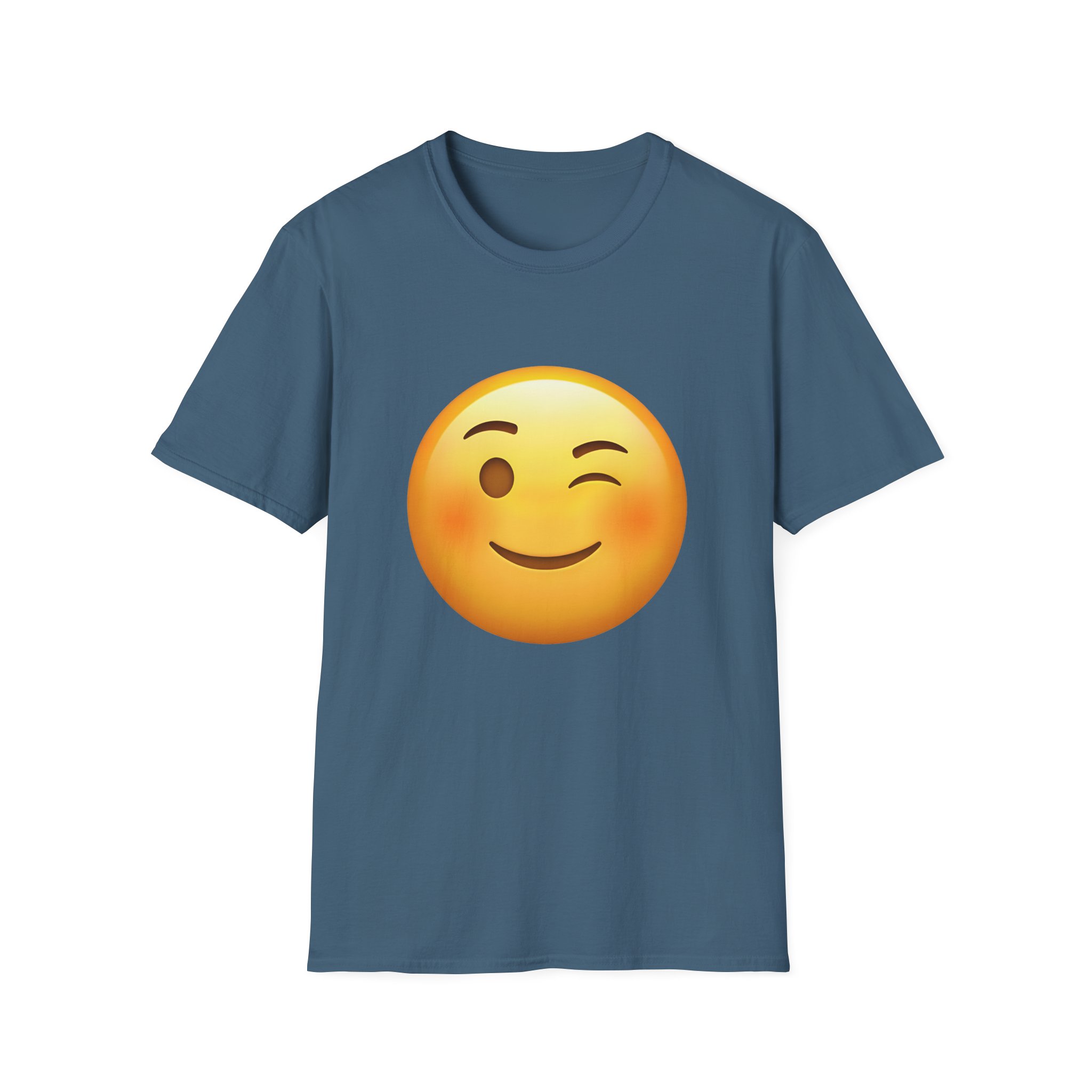 Denne T-shirt med den velkendte wink-emoji kombinerer humor og charme i ét design. Perfekt til fester, hverdagsbrug eller som sjov gave til nogen med glimt i øjet.